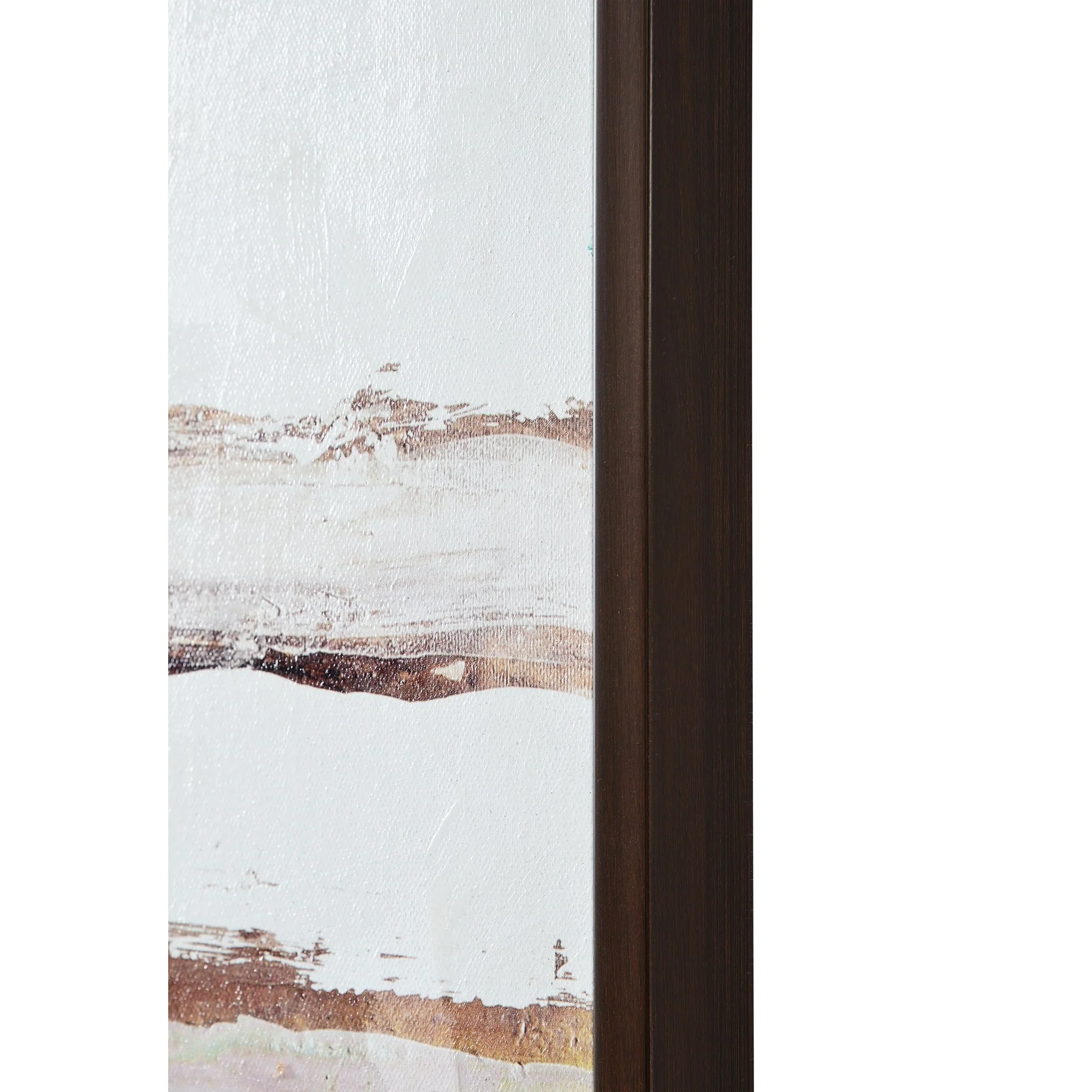The breathtaking landscape of cloudy skies and rolling hills takes on an abstract quality in this piece of printed art. While purple and green brush strokes bring a vibrant element to the design, the dark brown frame keeps it grounded in organic inspiration. Set within the traditional home, its grand size is enhanced when hung above a sofa or a buffet table.