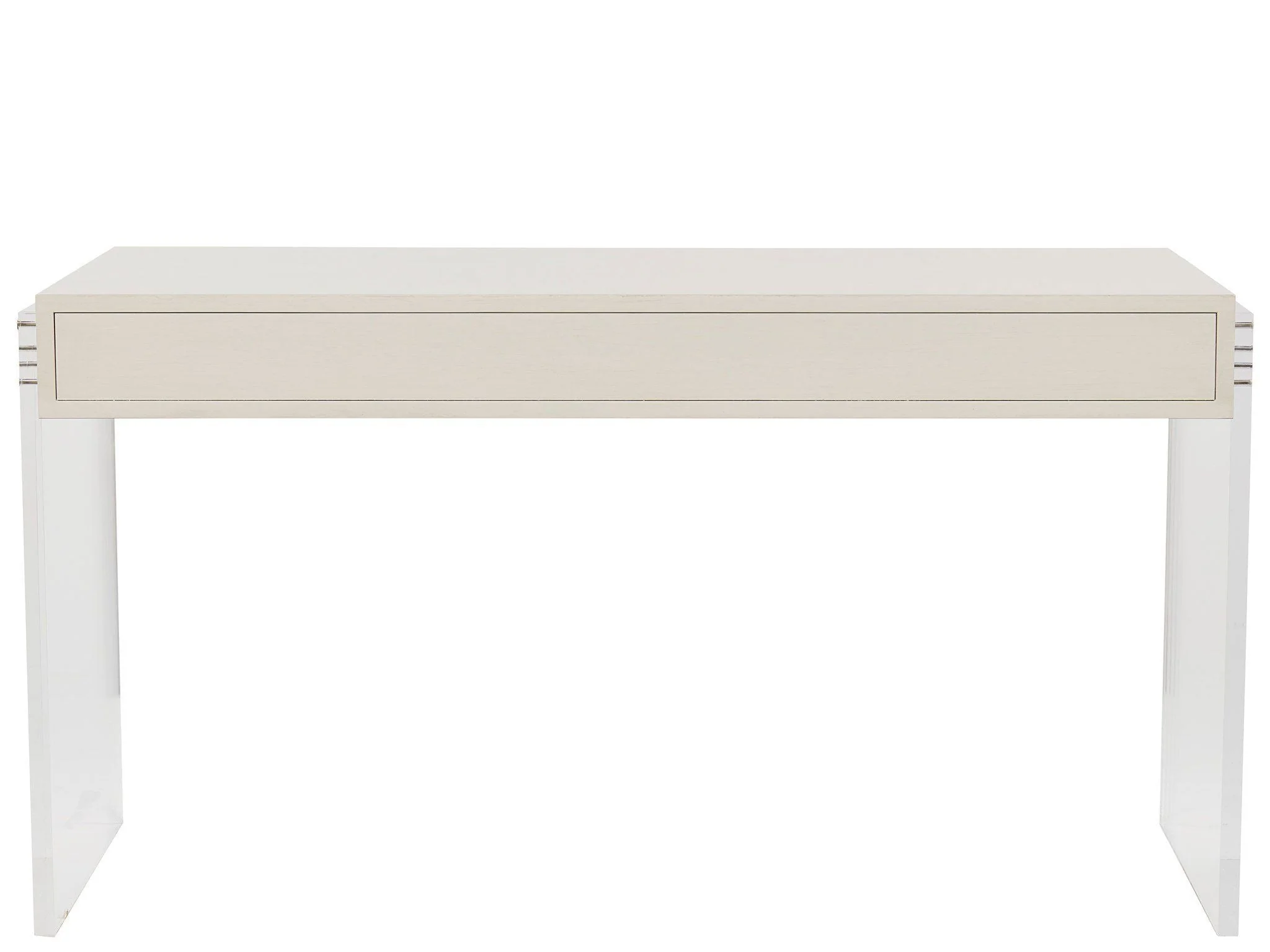 Welcome style and serenity into home office spaces with the stunning Maui Writing Desk, featuring three drawers with bronze ring pull hardware, a crisp white finish, and chic acrylic legs.