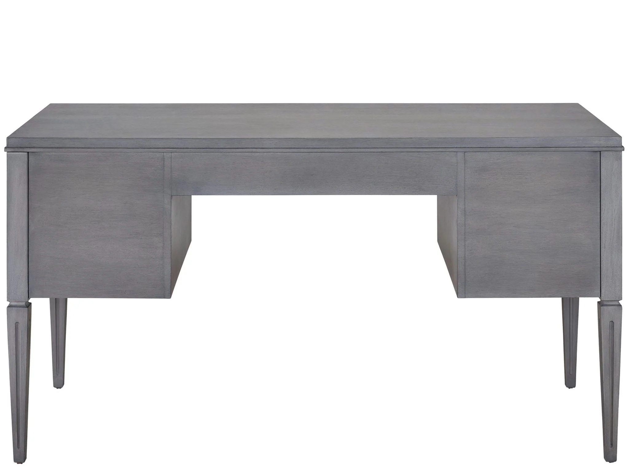Introduce a classically modern appeal to home office spaces with the Bedford Desk, a striking furnishing built with a series of spacious drawers accentuated by sleek ring pulls and finished in an authentic gray hue.