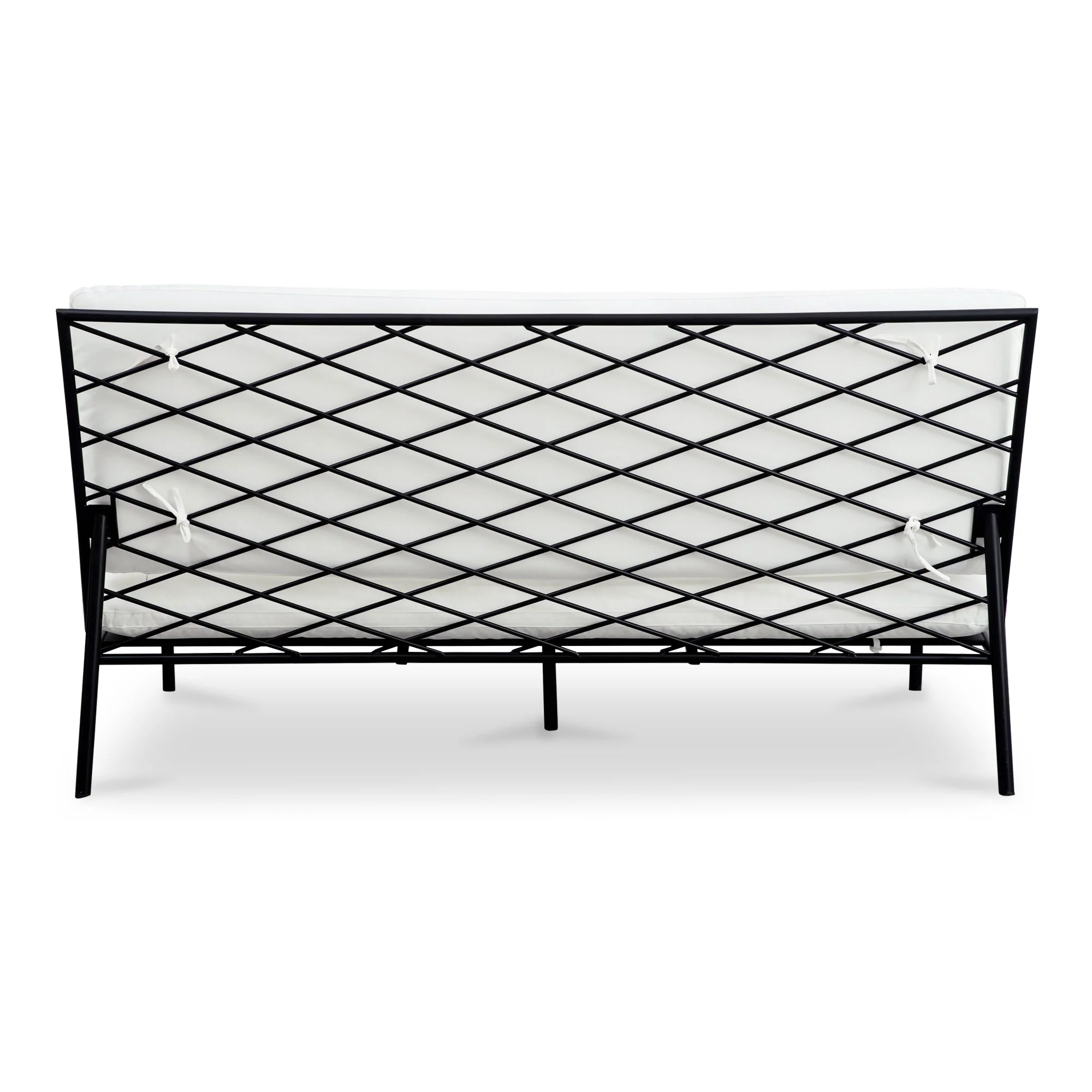 The Salma outdoor sofa’s armless design includes quick-dry foam cushions covered in 100% Olefin fabric that resists fading and includes ties for stability. It features a durable stainless-steel frame with elegant crisscross detailing. This piece combines superior comfort with exceptional weather resilience, making it perfect for outdoor use.