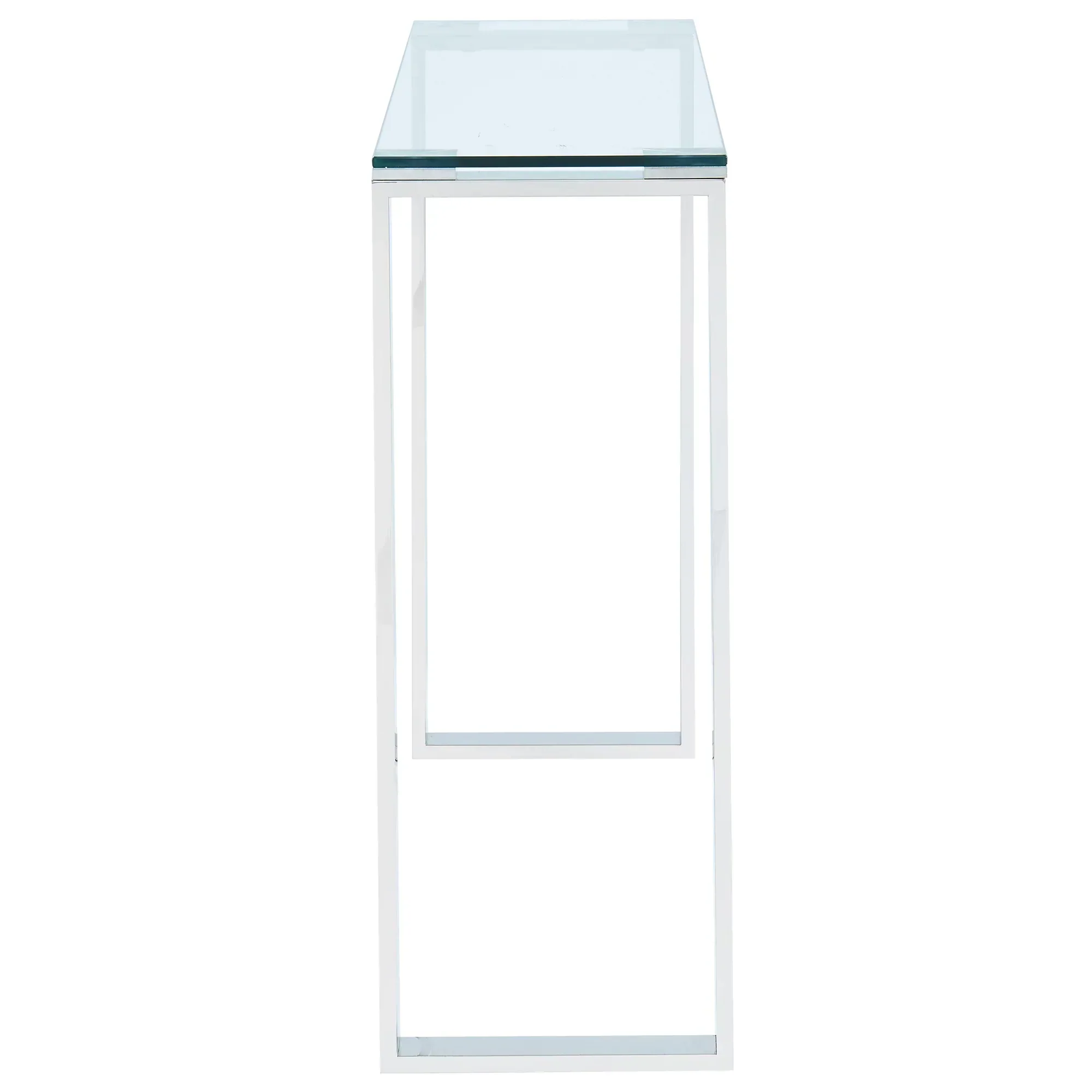 Create the perfect minimalist look with this collection of ultra contemporary tables. The polished stainless steel and the clear glass come together to create an airy, almost-not-there look that will open up your space. Use with coordinating coffee and accent tables in a living room, as a hallway table, or place with a sleek chair for a dressing table or desk.